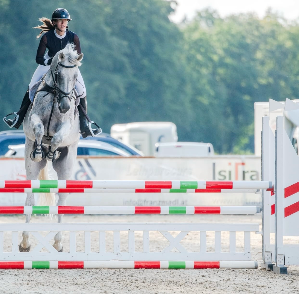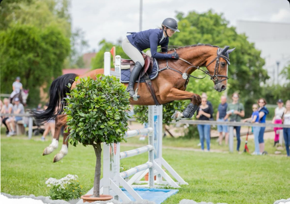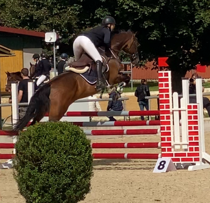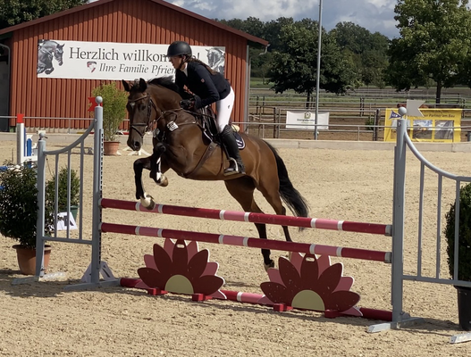 Sportlich bereits mehrfach in Springpferde A und L platziert, zeigt sie zuhause spielerisch ihr großes Vermögen und absolviert komplette Parcours auf M-Niveau.