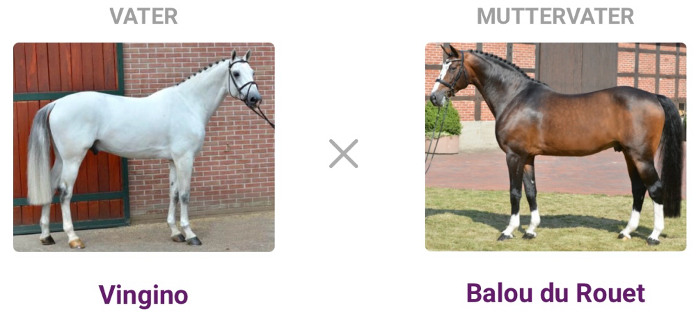 Vincenzo (geb. 2019) ist ein großrahmiger, kräftiger Wallach in wunderschöner Apfelschimmelfarbe. Seine Abstammung lässt keine Wünsche offen: Vater Vingino und Muttervater Balou du Rouet stehen beide für Spitzen-Springpferde mit enormem Vermögen und Rittigkeit.