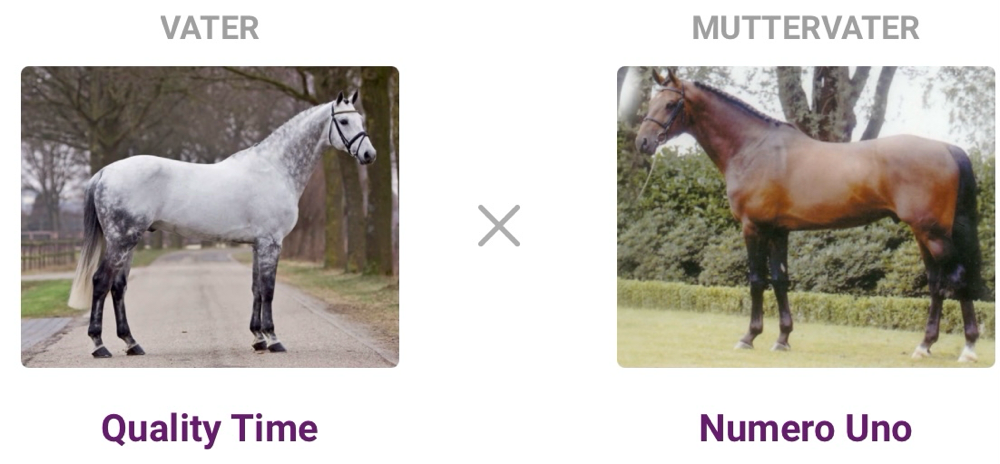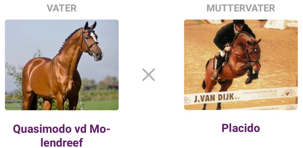 Quasibella (geb. 2019) ist eine auffallend hübsche und moderne Stute, die ihre Qualität von beiden Elternseiten mitbringt. Vater Quasimodo van de Molendreef und Muttervater Placido stehen für beste Springabstammung mit viel Leistungsbereitschaft und Vermögen.
