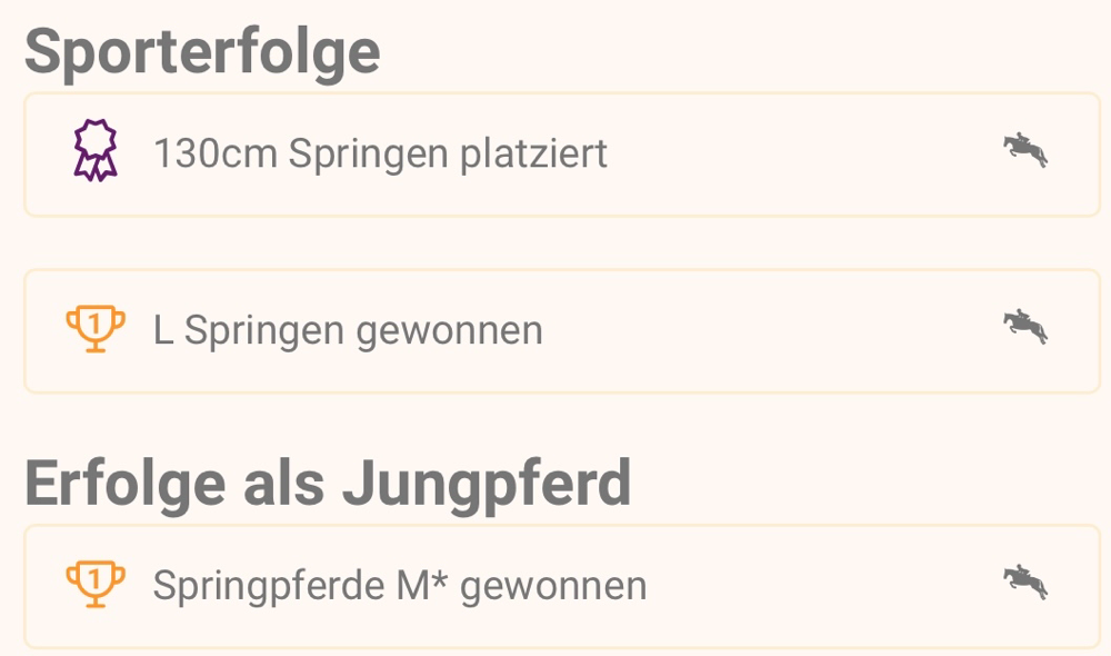 Sportlich ist Vincenzo bereits mehrfach in Springpferde A und L platziert und zeigt viel Qualität für den weiteren Aufbau.